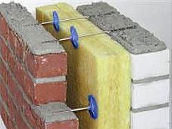 Для утепления и облицовки монолитных стен используют гибкие связи с дюбелем.