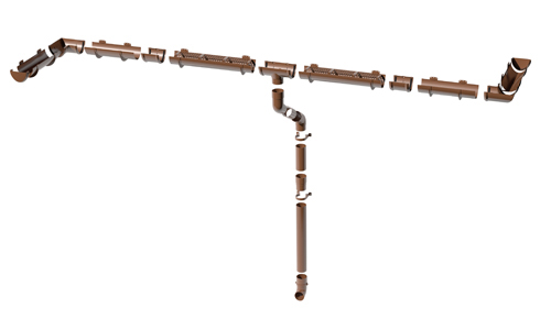 Желоб полукруглый для сбора дождевой воды со скатной кровли. Фиксируется кронштейнами через каждые 0,6 - 0,9 м. Монтируется с уклоном 1 см на каждые 3,5 м. Выполнен из оцинкованной стали с полимерным покрытием.