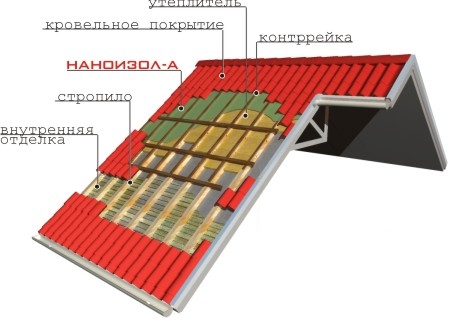 Наноизол А - ветро-влагозащитная мембрана, используется во внутренних элементах стен и кровли для выветривания водяных паров из утеплителя и защиты его от влаги внешней среды. Крепится с внешней стороны утеплителя под наружной облицовкой. Применяется в каркасном строительстве, в вентилируемых фасадах и скатных кровлях.